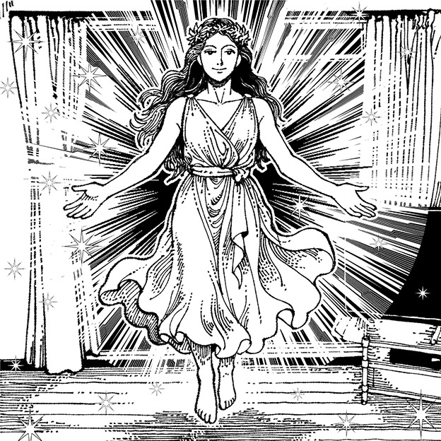 それはひとりの女性——透き通るような光に包まれた姿。